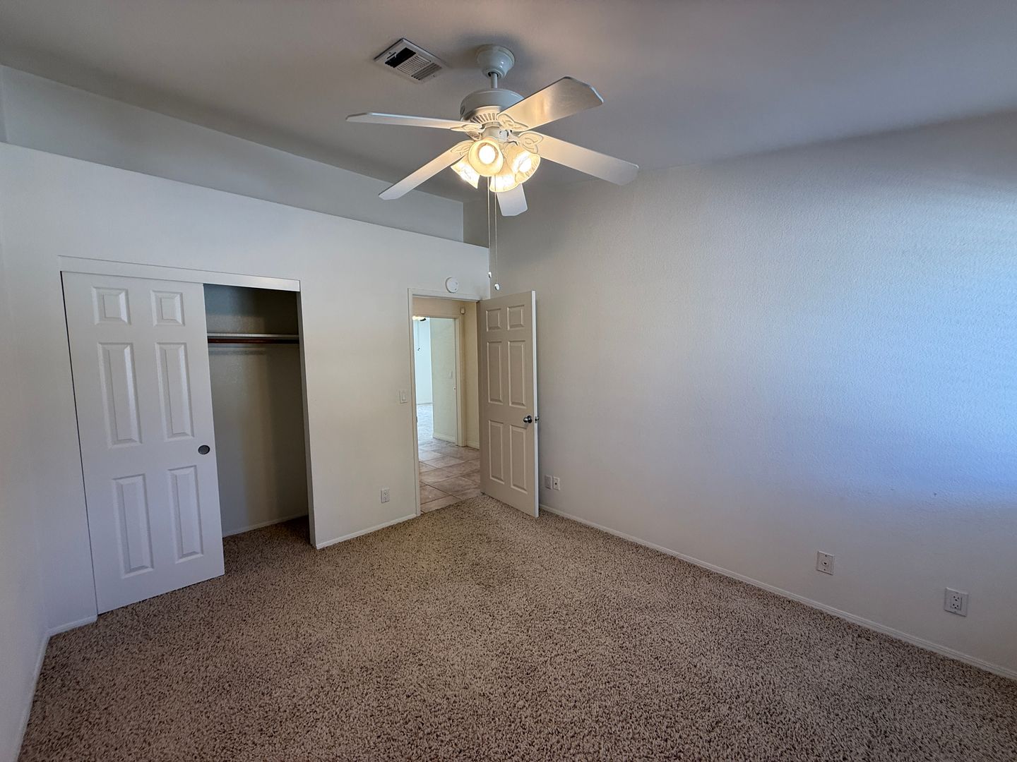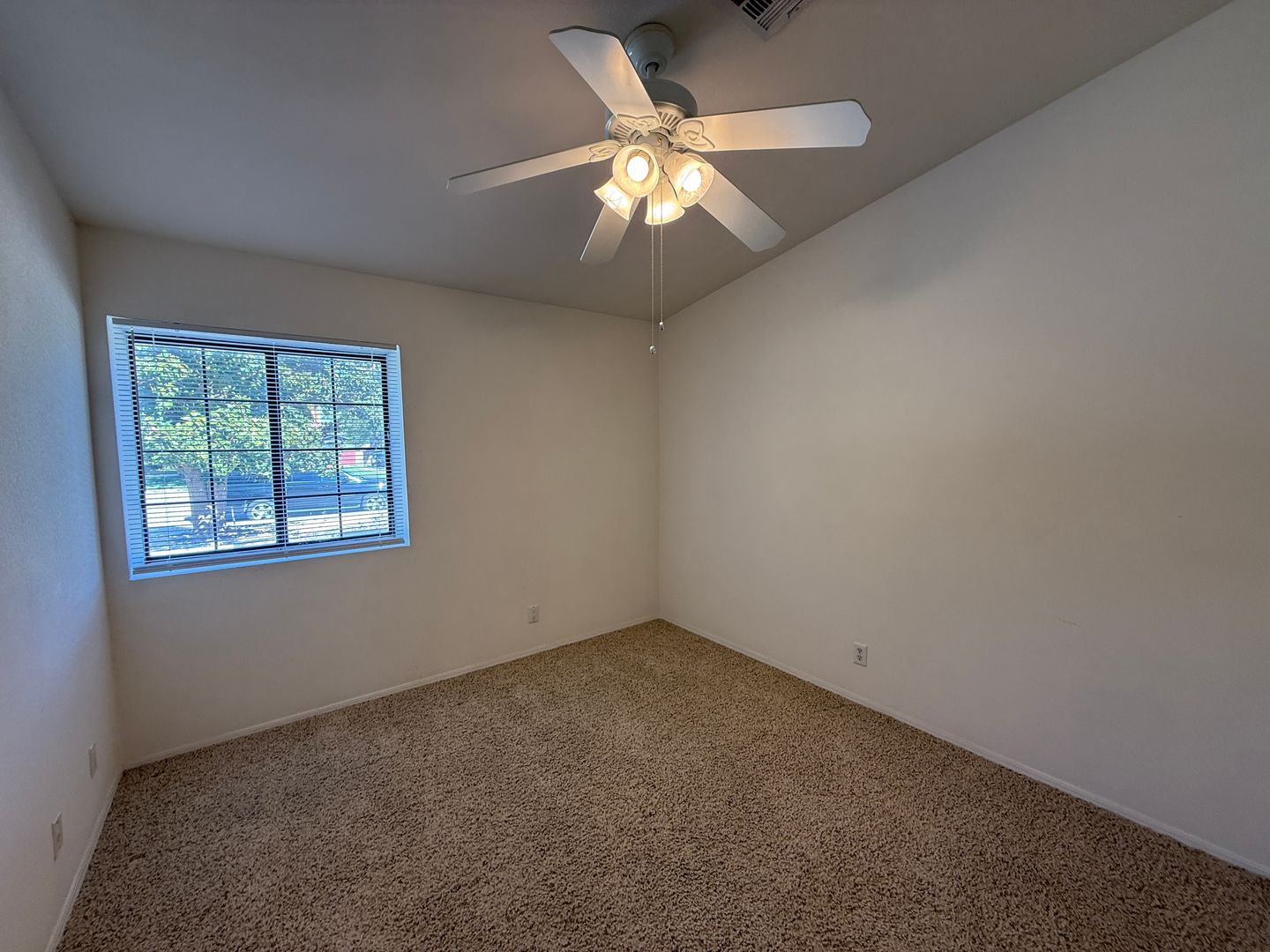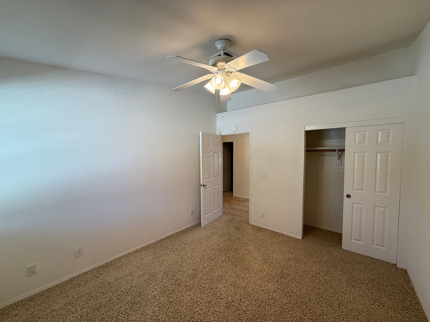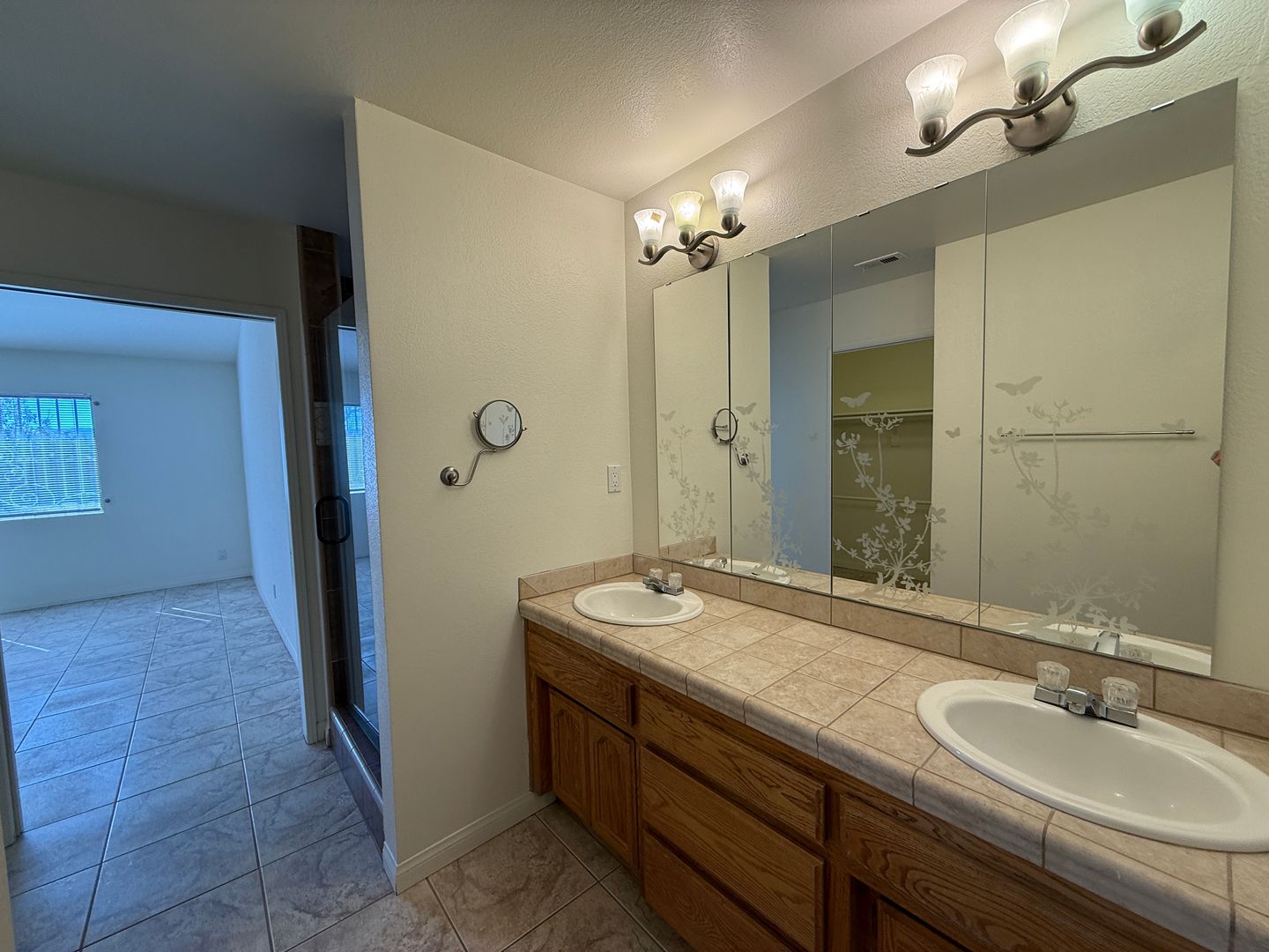 Throughout the home, you’ll find ceiling fans, carpet flooring, and ceramic tile flooring in all the right places—balancing comfort and practicality. The bedrooms are generously sized, each offering wide window sills that add character and provide space for décor or houseplants. The primary bedroom is a true retreat, complete with a walk-in closet and a private en-suite bathroom featuring dual vanities, providing both style and functionality.