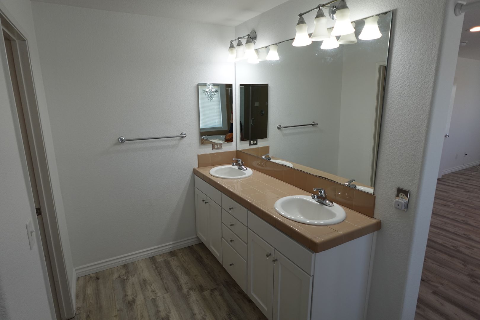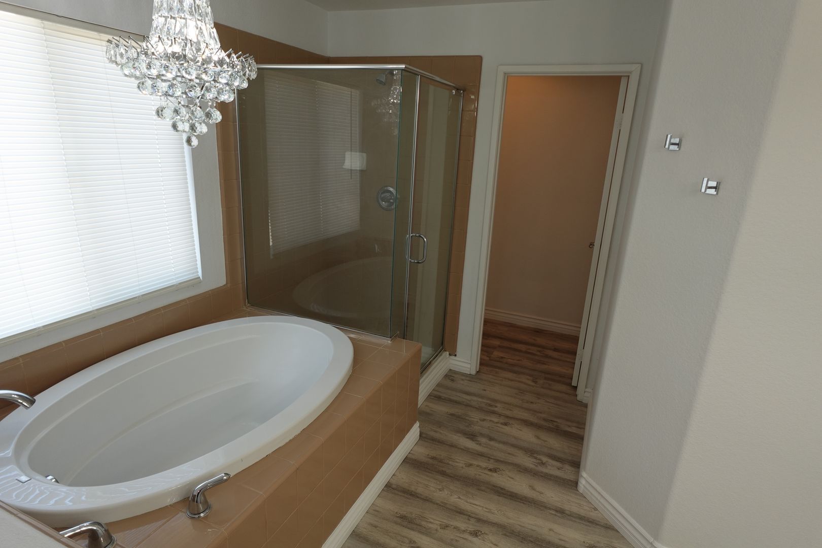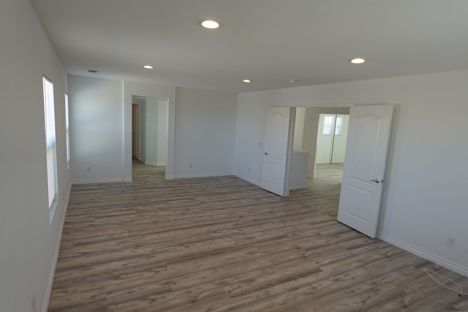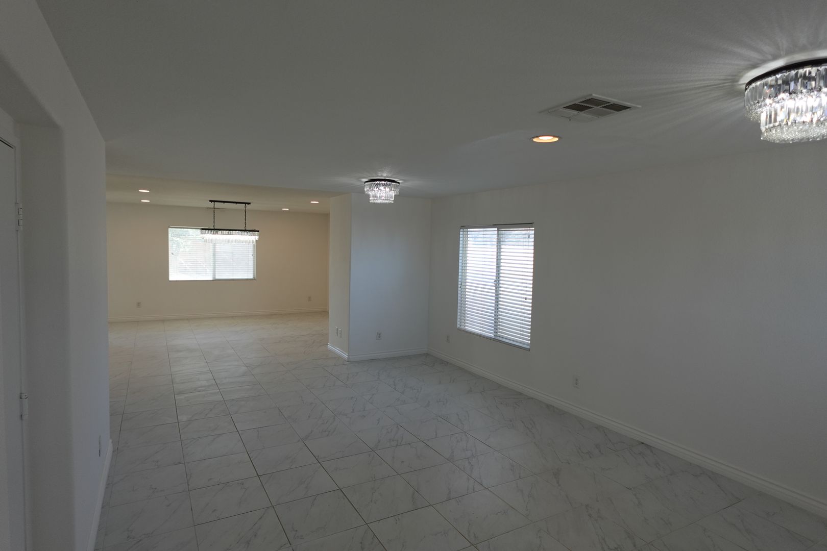 The updated kitchen features stainless steel refrigerator, gas cooktop, farmhouse sink, barn-door pantry and a large island ideal for meal prep or gatherings. Additional updated bathrooms, laminate wood and tile flooring throughout, neutral and new paint, and chandeliers add contemporary touches.