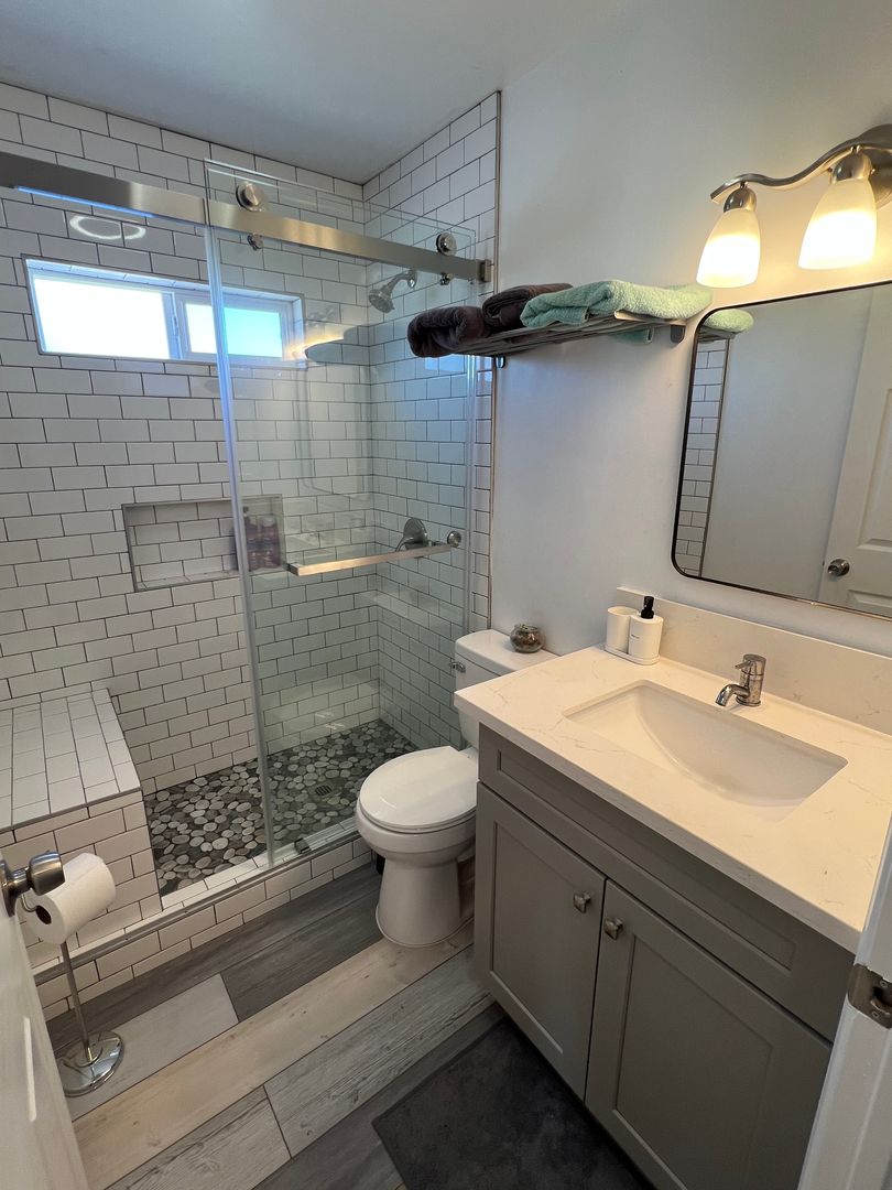 This spacious 2 bedroom, 2 bathroom home boasts a brand new kitchen and baths, complete with stainless steel and black appliances. Enjoy the convenience of recessed lighting, ceiling fans, and new neutral paint throughout.