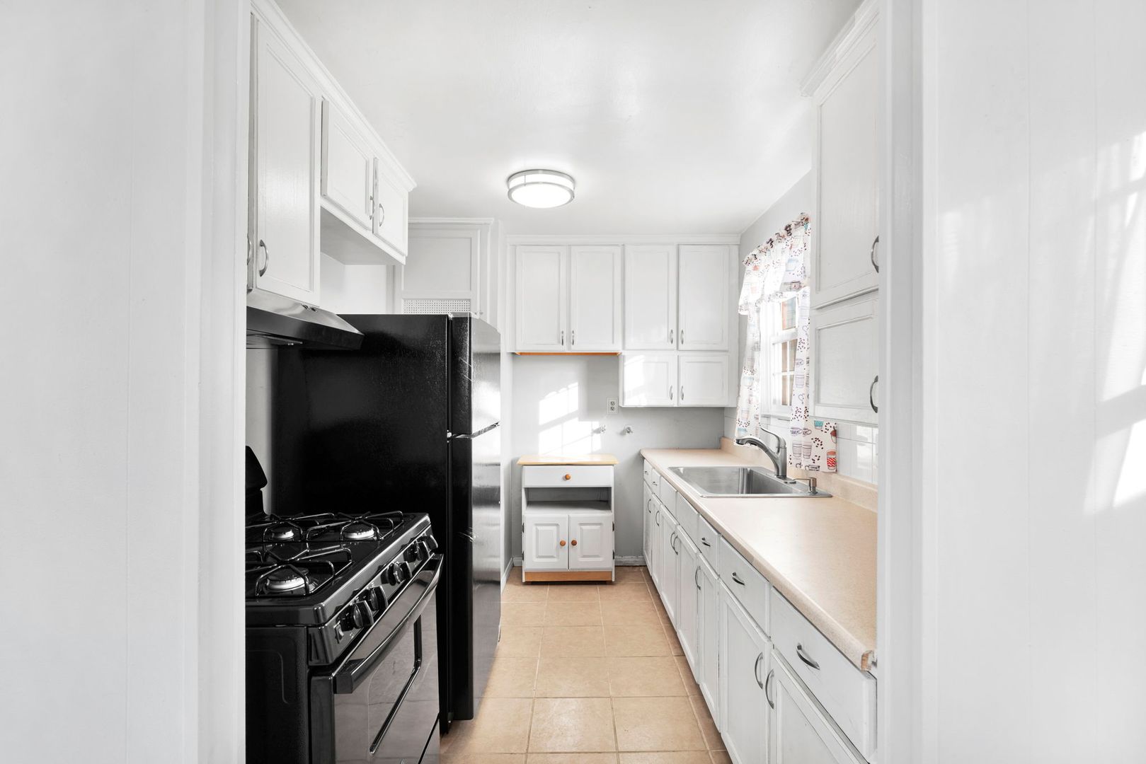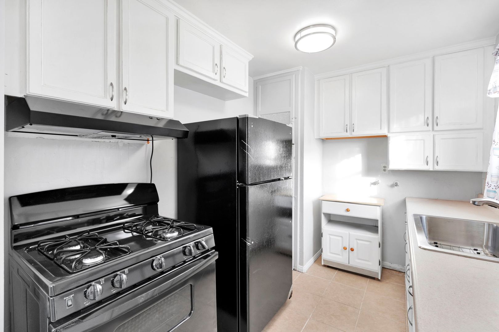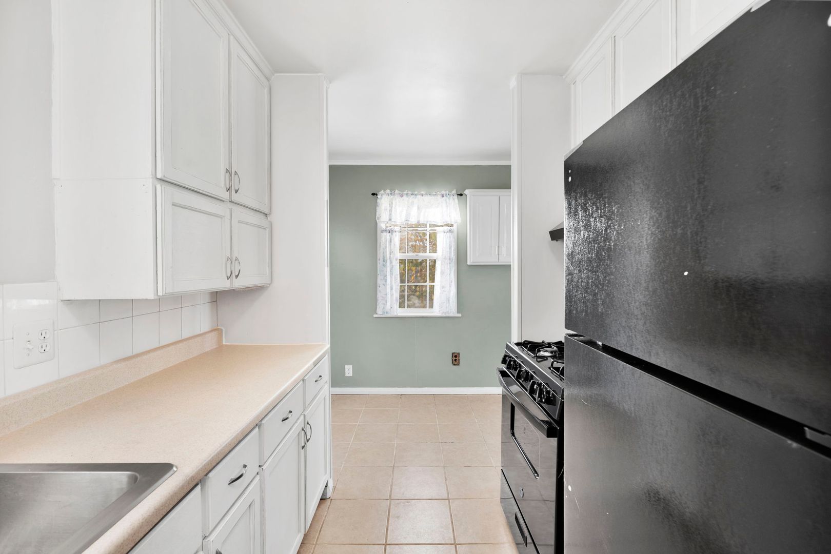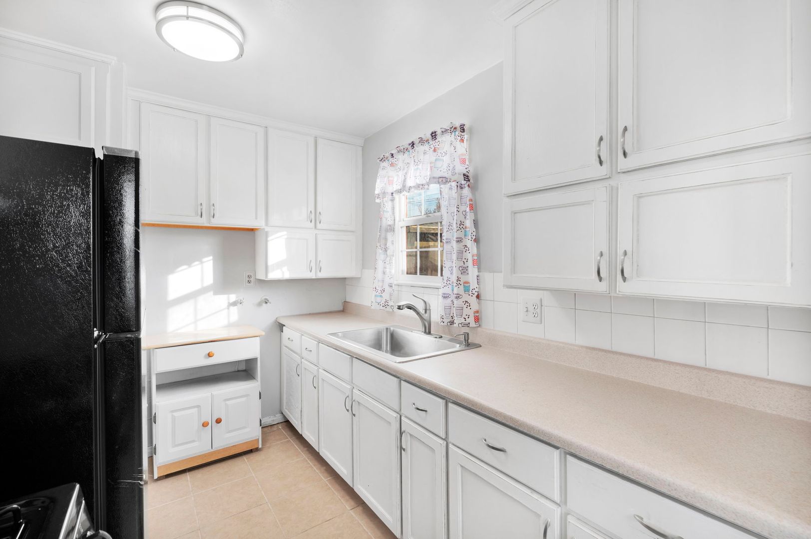 The kitchen has been updated with a new refrigerator and stove/oven, complemented by a modern new sink faucet.