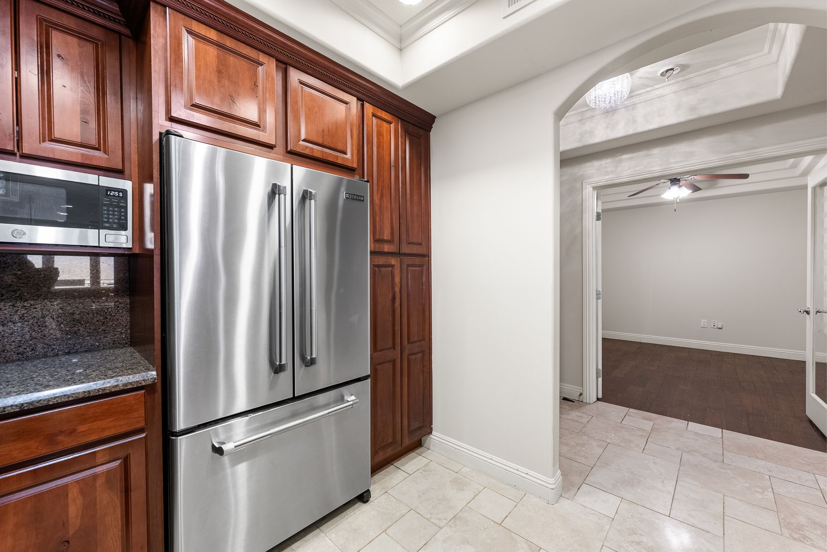 The home offers wood flooring and high end carpet throughout the home that adds a touch of elegance and is easy to maintain. The chef's kitchen is outfitted with Bosch dishwasher, Viking stove, JennAir fridge… everything you want in a luxurious home.