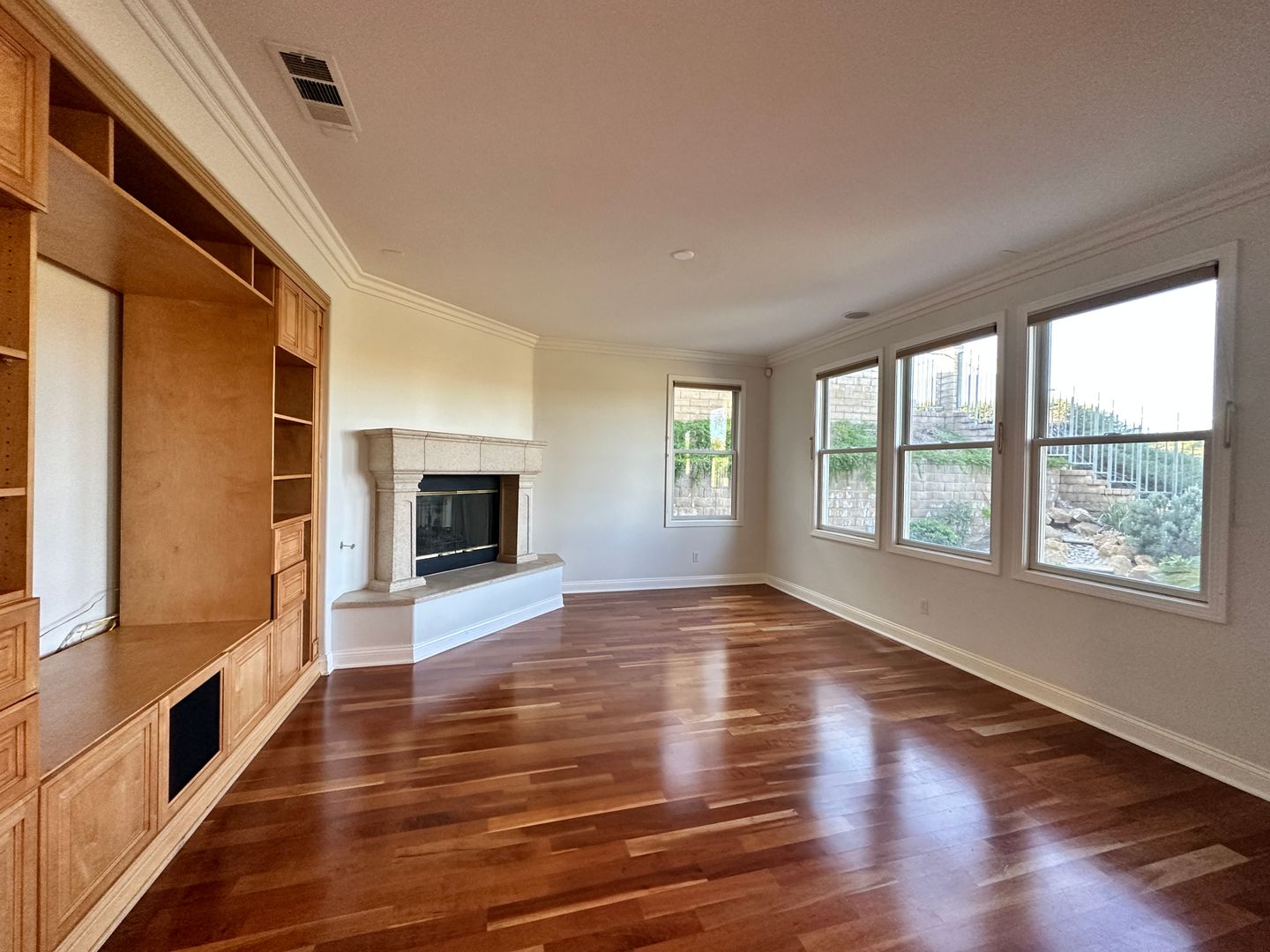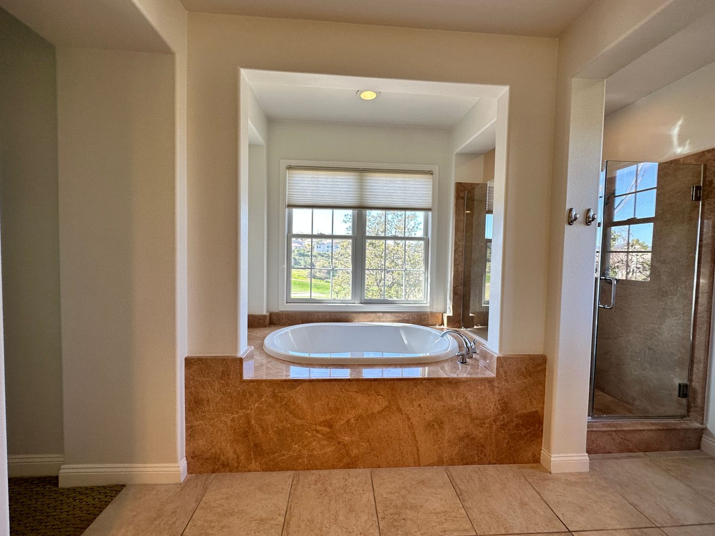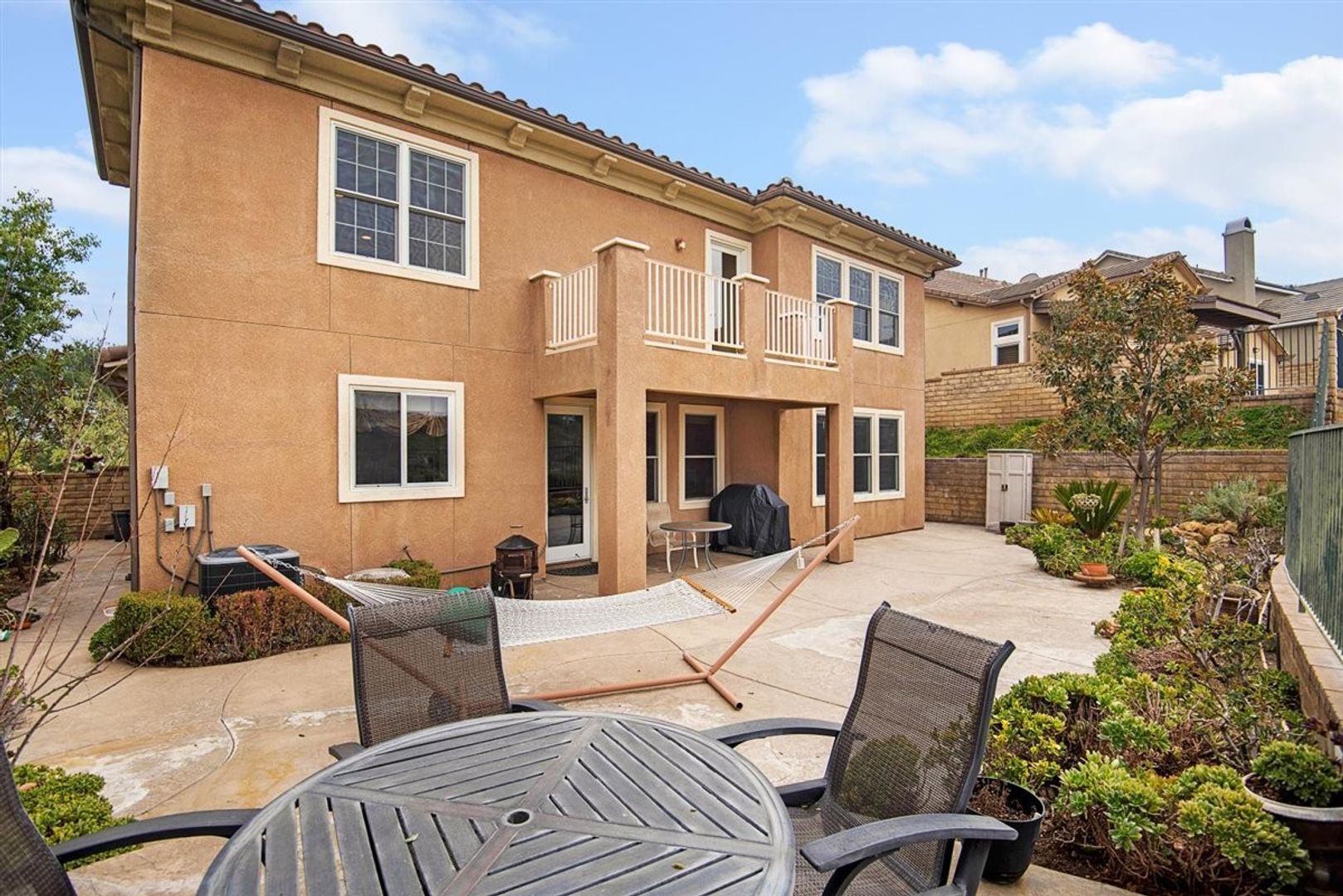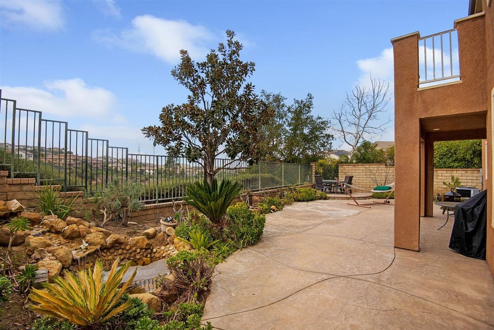 5 Bedrooms (3 have en-suite Bathrooms), 4.5 Bathrooms, 3385 sq. ft. The entire back of this home features breathtaking views of The Oaks Club at Valencia golf course. Highly desired floor plan offers a downstairs bedroom w/full en-suite bathroom. There are two fireplaces, one in the formal living room and one in the family room. The kitchen has granite counters, a center island, built-in refrigerator, double oven, and a butler's pantry. The upstairs master bedroom and bath runs along the entire back of the house. There is a balcony with it's own entrance off of the master dressing area. Master bath has double walk in closets with built-ins, a large bathtub and separate shower. Hardwood flooring downstairs and upper loft area, built ins throughout the upstairs and downstairs. The front courtyard area has a beautiful fountain and backyard with a beautiful serene running waterfall and two large seating areas. Close proximity to freeway, shopping and award winning schools!
