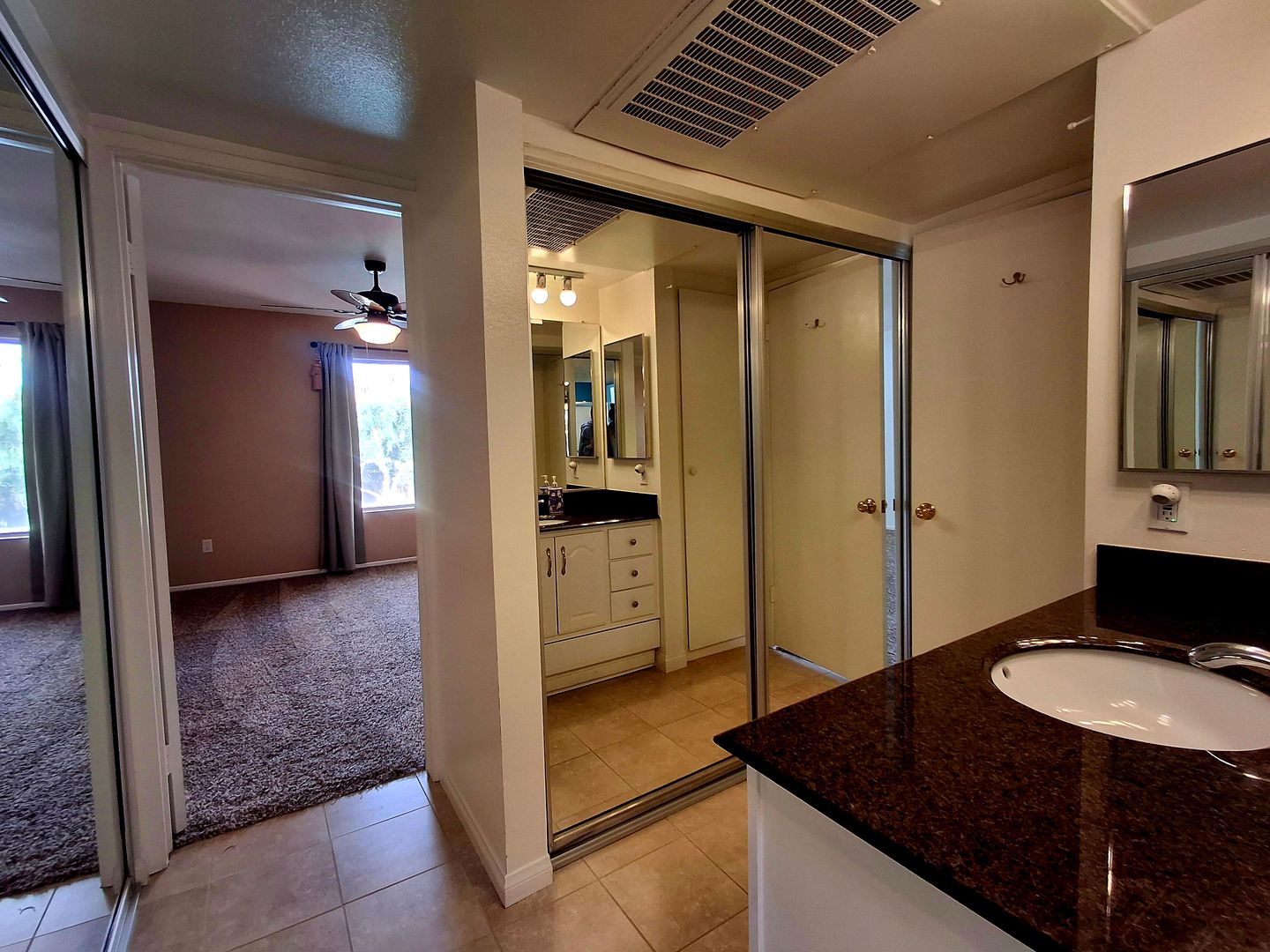 The new dishwasher and ceiling fans add a modern touch to the home. The private balcony not only provides a relaxing outdoor space but also offers a stunning view of the swimming pool. Storage will never be an issue with two large closets inside and an extra storage cabinet outside.